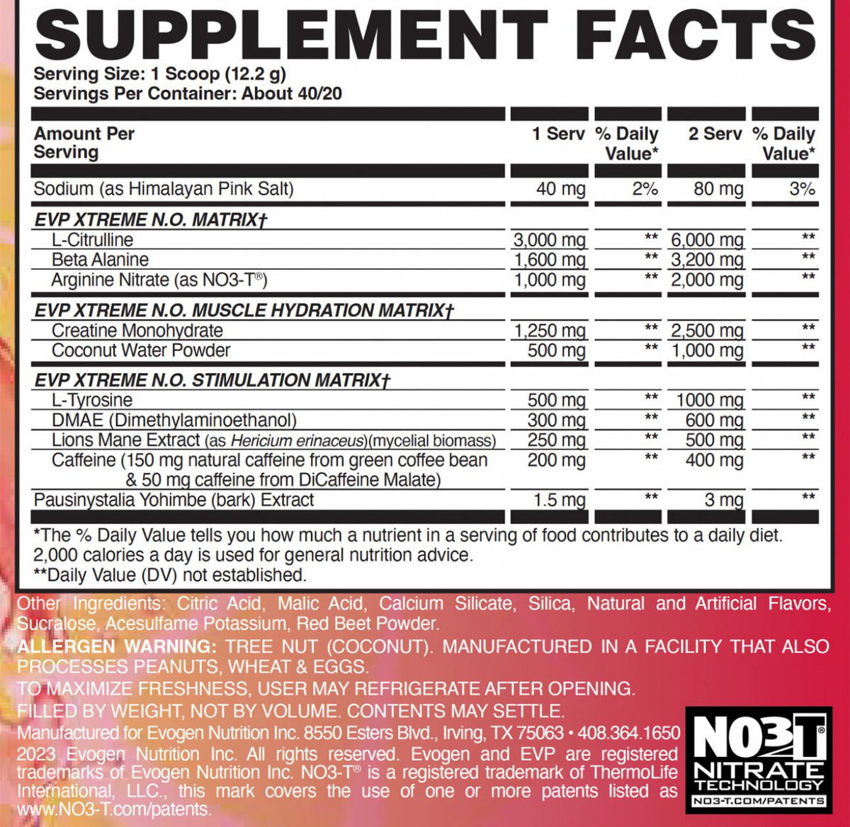 Evogen EVP Xtreme es un pre-entrenamiento de alto rendimiento diseñado para atletas que exigen más intensidad, enfoque y energía explosiva en cada sesión. Su fórmula combina ingredientes clínicamente dosificados para mejorar el flujo sanguíneo, fuerza, resistencia y concentración mental, sin caídas bruscas de energía.